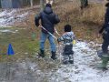 Koululaiset kyykkäohjauksessa – Pyöräretki – LähiTapiola Itä heijastinliivien lahjoitus koululle 1 lk.